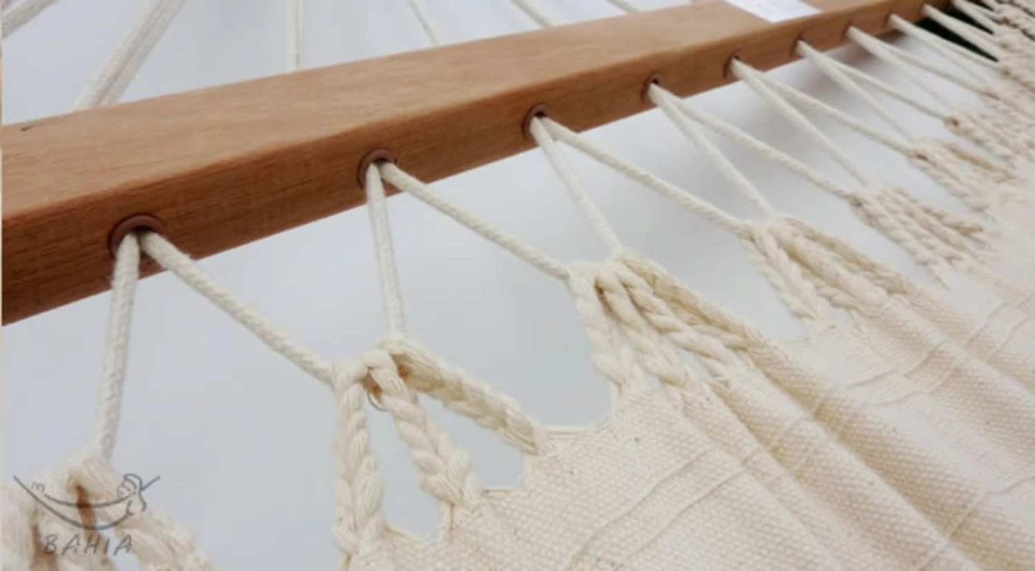 Le dimensioni generose di questo meraviglioso prodotto del brand Bahia ti invitano a ore di puro relax. In cotone 100% biologico e con colori privi di AZO, l’amaca ha un bastone lungo 110 cm in legno FSC® ecologico.