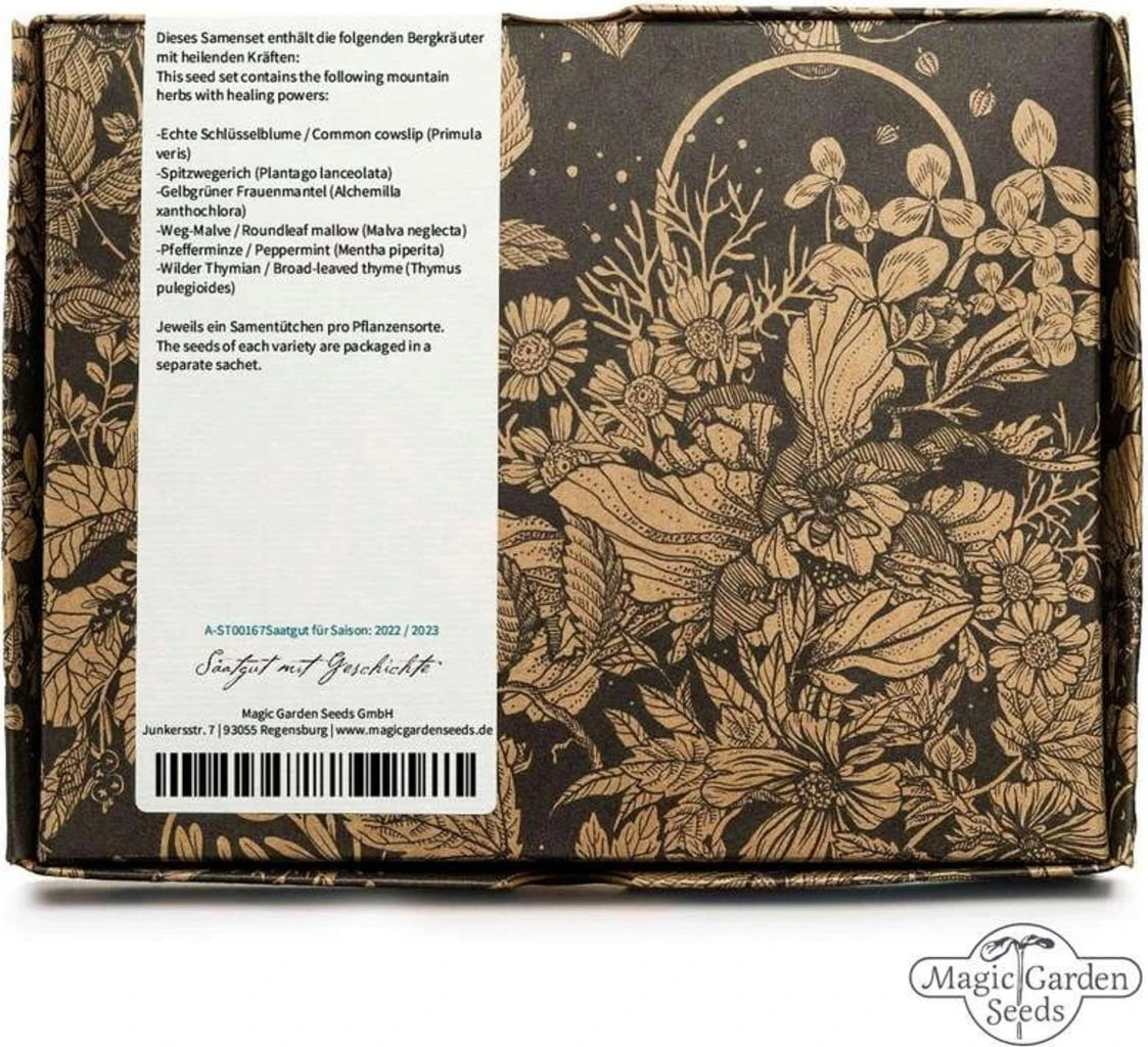 Gli effetti curativi delle piante selvatiche, incluse quelle di montagna, erano già noti in passato e venivano regolarmente sfruttati. Per preservare questa antica conoscenza, Magic Garden Seeds ha creato questo set che include sei diverse erbe medicinali conosciute e utilizzate fin dall’antichità. Un regalo ideale per chi ama coltivare le erbe ed eventualmente utilizzarle nella vita di tutti i giorni.