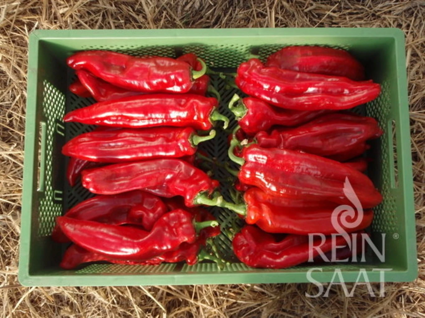 Questa varietà estremamente produttiva forma frutti di 30 cm che maturando passano dal verde al rosso. Molto aromatici e dalle note dolci anche quando sono ancora verdi.