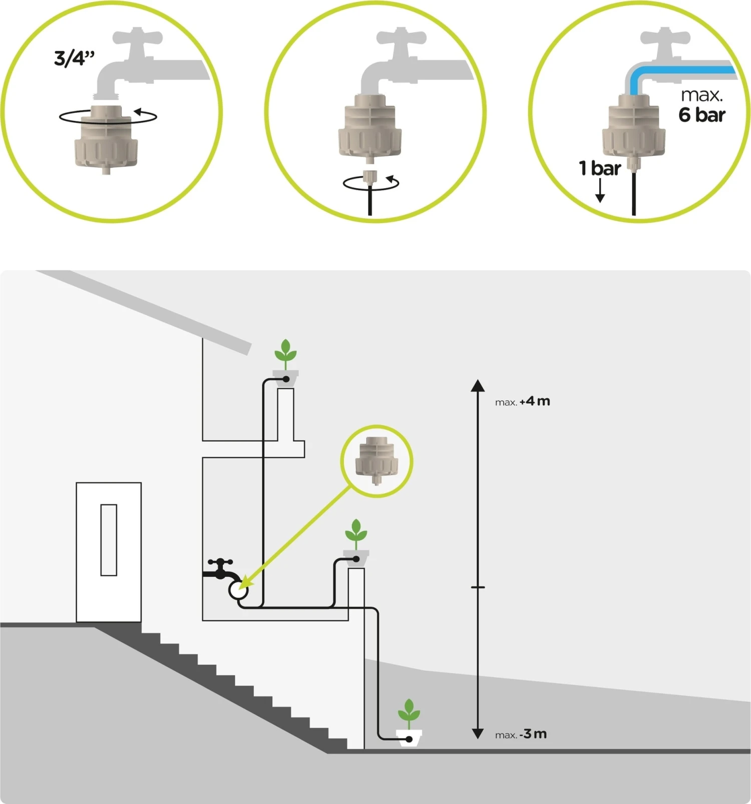 Il riduttore di pressione riduce la pressione dell’acqua, mantenendola costante su 1 bar. Con la filettatura da 3/4 ” e una pressione di ingresso massima di 6 bar, l’accessorio si adatta perfettamente a quasi tutti i tipi di rubinetto. Il filtro in acciaio impedisce la penetrazione di sporco e può essere rimossa per pulirla.