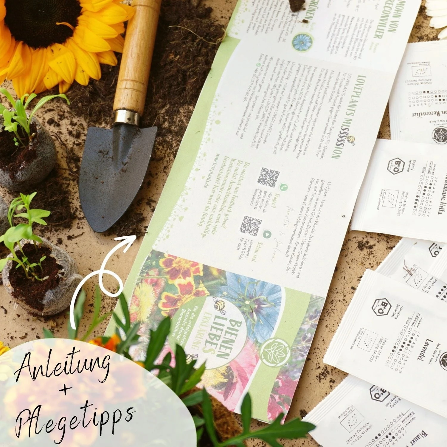 Questo set di semi bio di fiori è stato creato appositamente per fornire alle api e agli altri insetti utili una preziosa fonte di cibo. I 12 diversi tipi di fiori sono infatti particolarmente ricchi di nettare e di polline.
